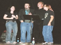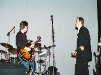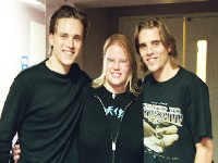 Both bands did an autograph and picture session in the hallway and believe me this time it was really really crowded, not like last time at the Hope concert...anyway. I was waiting for everyone to get their autograph and picture since I only wanted to give Jonathan some German On the Edge flyers and Richard a small wedding gift. And of course, a picture with both. Oh wait, there was one thing I did though: Since Katharina couldn't be here and since it was her birthday a week later, I had a birthday card prepared that everyone signed...so Katharina now has a birthday card signed by Jonathan, Richard, Rick, Jeanine, Maria (their webmistress), Michelle (my Portland angel) and Norma (our co-concert-goer)!!! Very cool. :-)