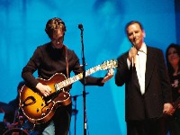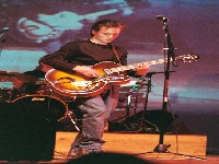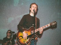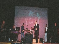 A word about the pictures. The first few (you'll know which ones) were taken with a film that had been exposed to x-rays at the LA Airport (from my trip to the Whisky concert...), and therefore, have now white stripes in them...sorry 'bout that. Also, I got a new fancy flash for my birthday a few weeks ago and, of course, had to try it (it has a longer reach...even though I was sitting in the fourth row). You'll sometimes see a blur or more darkness - that's me showing my inability to hold the now way heavier camera...but all in all, I think, the photos turned out great. Especially when the light effects put Jonathan in such really good settings! :-) (LOVED the blue and pink lights!!!!) That's why I left some of the blurrier ones in the selection, hope you don't mind *g*
